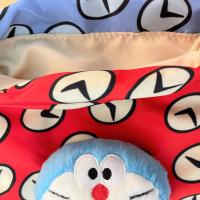 ドラえもんボアフェイス巾着 立体 丸い顔 I'mDoraemon タイムふろしき柄 赤 青 キャラクター グッズ