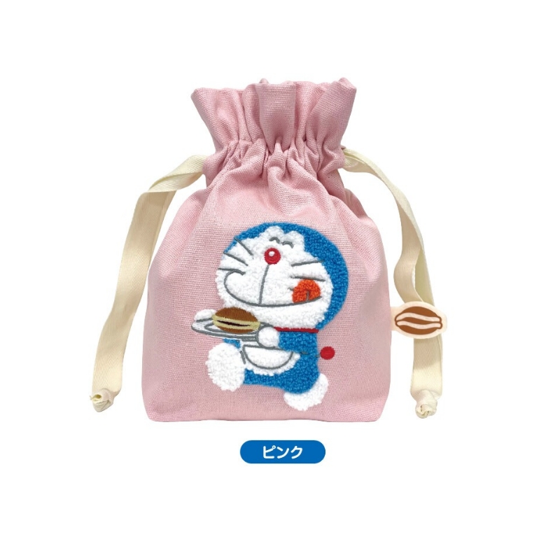 ドラえもん グッズ 相良刺繍巾着 Doraemon マチ付き モコモコ きんちゃく袋 ピンク マチ付き 小物入れ