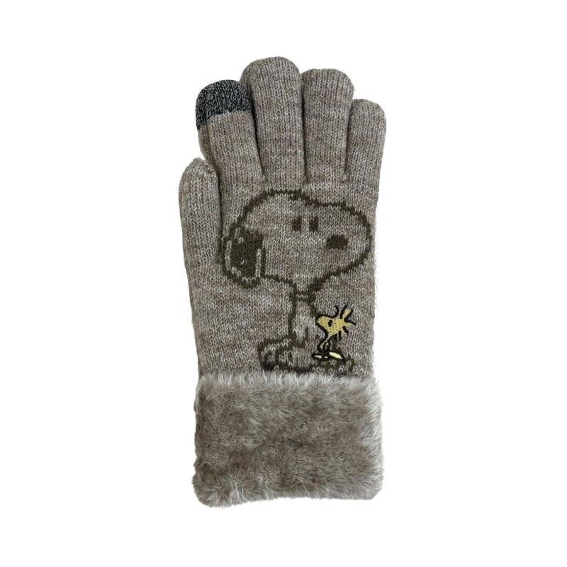 スヌーピー 手袋 ふわもこ ニット レディース あったか2重手袋 スマホ対応 女性 防寒 SNOOPY PEANUTS キャラクター ベージュ グッズ
