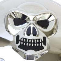 立体的に浮かび上がったスカル、クロームベースにブラックアイ・スカルがカスタムルックを引き立たせます。