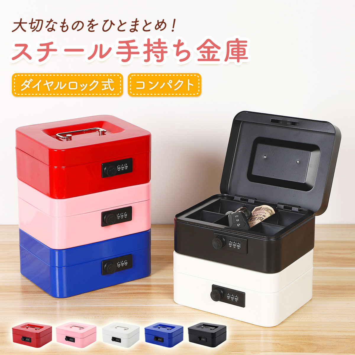 金庫 手持ち 手提げ ボックス ダイヤル式 小型 コンパクト 家庭用 業務 オフィス スチール ミニ 事務用品 貯金 出張 一人暮らし 生活費 管理 卓上 保管 防犯 金属製 持ち運び 簡易 手提 手さげ 手下げ 手もち おこづかい おこずかい セーフティボックス A6 B6 子供 こども 子ども