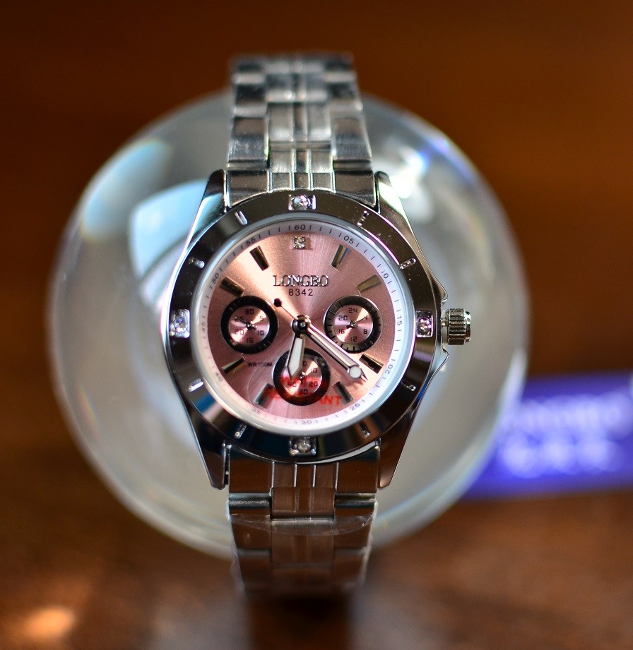 鮮やかなケースのカラーが際立つ、LONGBO のかわいらしい 腕時計になります。色は商品の写真順にピンク、紫、水色、白、黒の5色がございますので、お好きな色をお選びください。