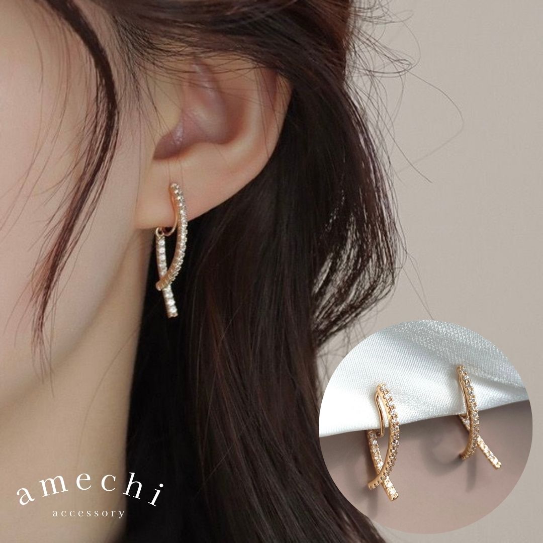動くたびにキラキラと揺れるジルコニアバーが、耳元に華やかさを演出してくれます。
