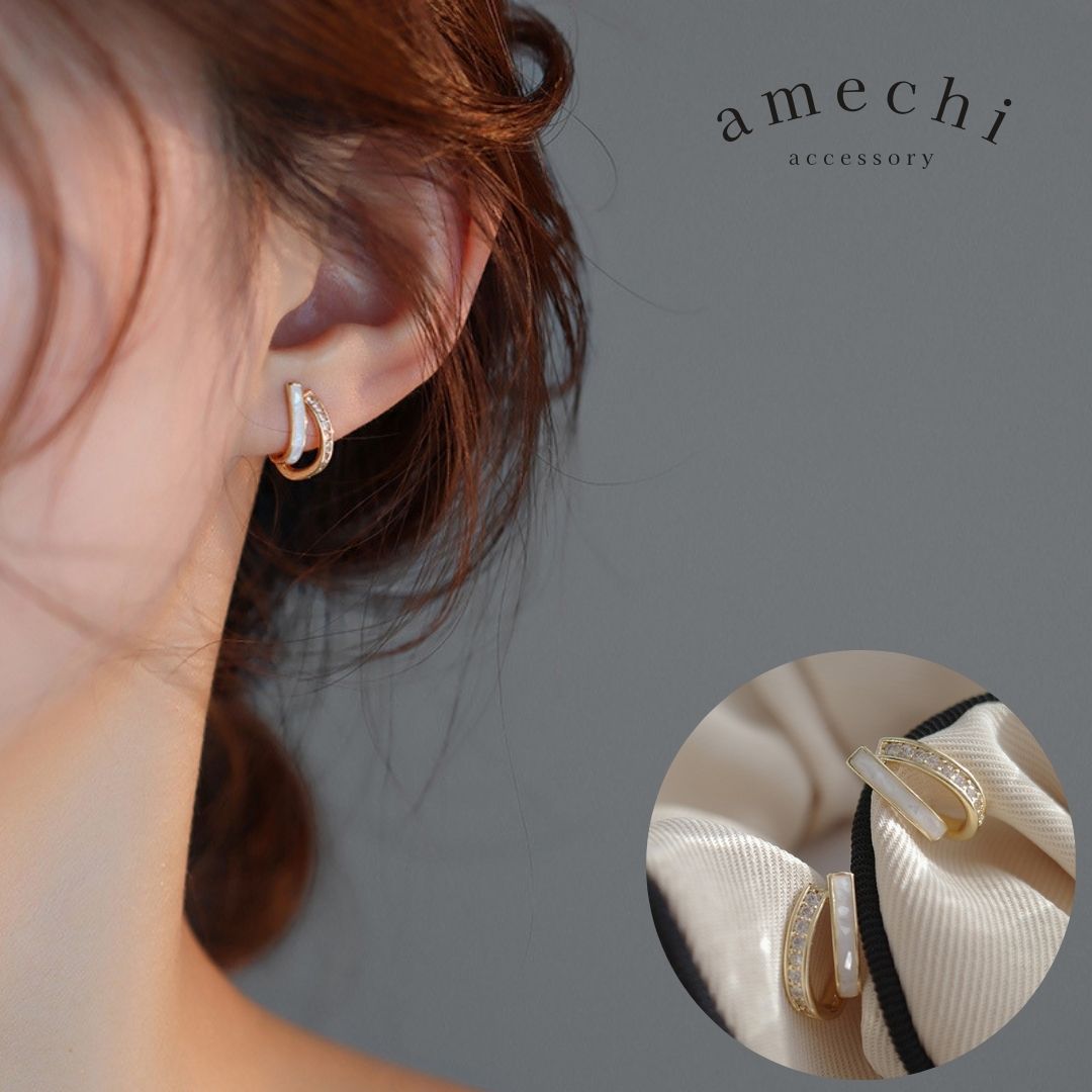 ホワイトのラインとキラキラと輝くジルコニアが美しいイヤリングです。