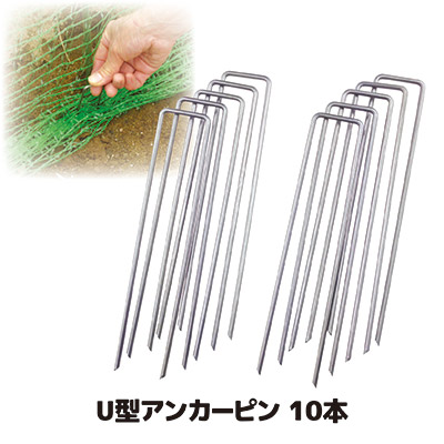 U型 アンカーピン 10本 防護ネット固定 防鳥網 ピン 留め具 ガーデニングネット 杭 押さえ 農業 園芸 畑 ガーデニング メール便 送料無料