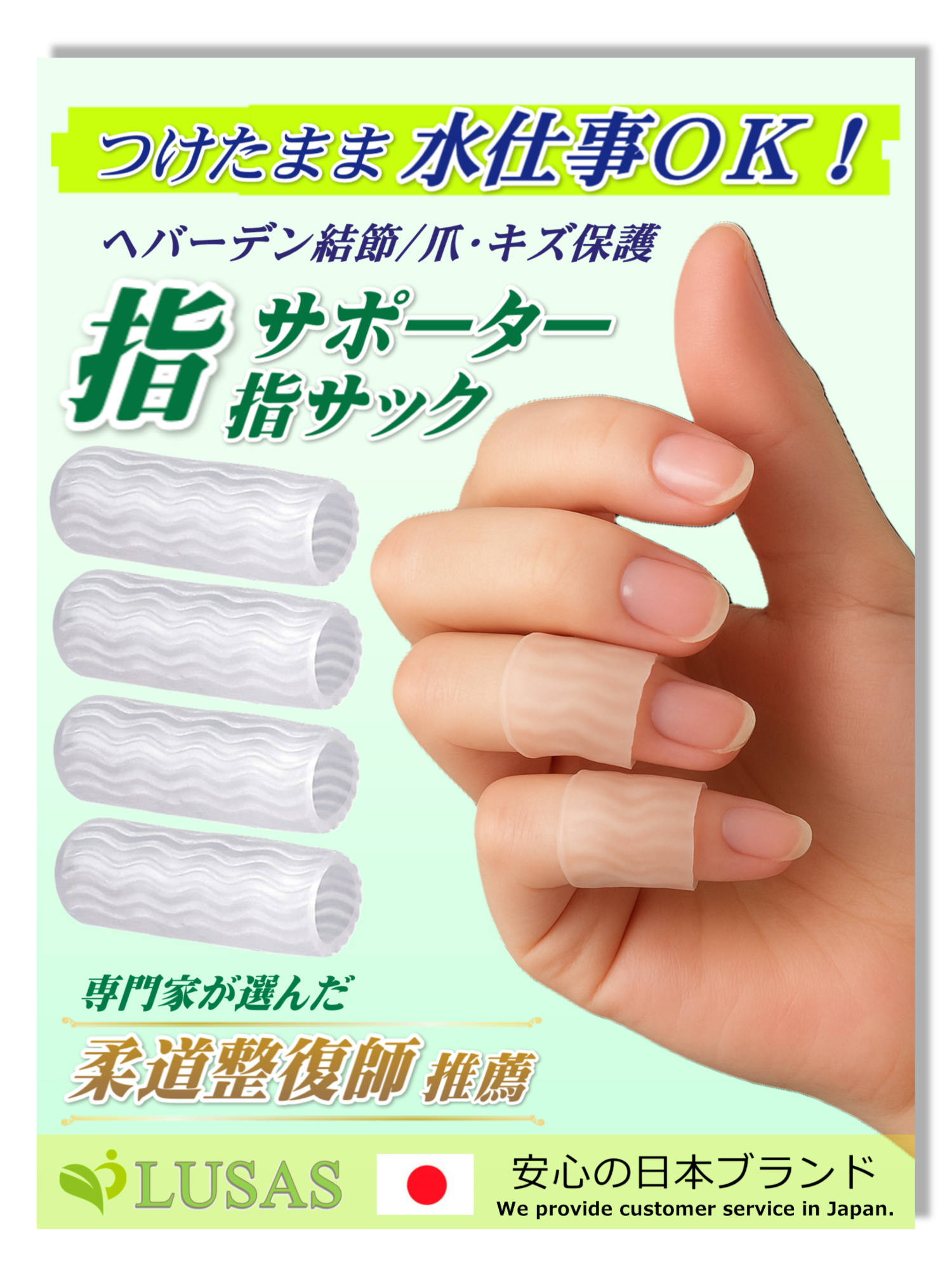 柔道整復師推奨品:柔らかな高品質シリコン素材で、耐摩耗性、伸縮性に優れており、すべての指にぴったりフィットします。指関節を適度に加圧し、衝撃から守ってくれます。ヘバーデン結節、その他、指のトラブルでお悩みの方に、おススメのシリコン製サポーターです。
