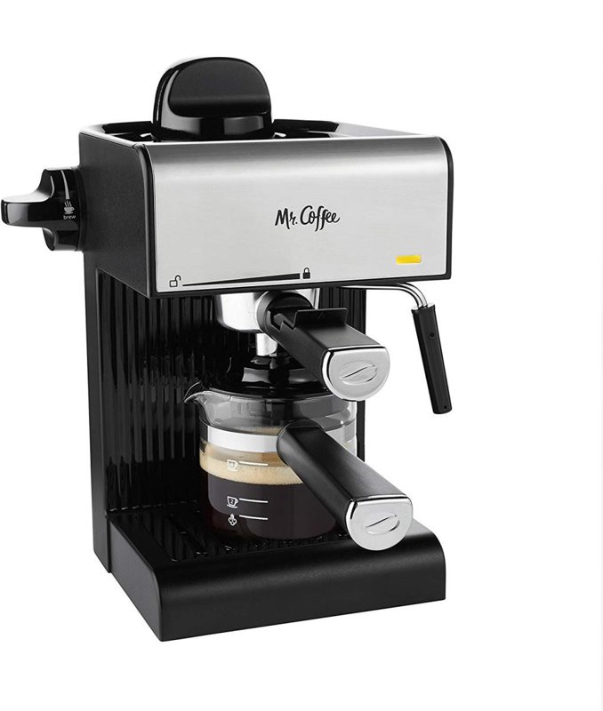 ミスターコーヒー エスプレッソメーカー Mr. Coffee BVMC-ECM180 スチームサイズ 28.9×25.9×21cm蒸気システムは最大20オンス(566g)のおいしいエスプレッソコーヒーを作成しますクリーミーなカプチーノとラテ用の強力なミルク泡立て器付き900ワットの容量ステンレス泡立て器計量スコップ、ガラス製のデカンタ、セラミックカップ2個が含まれています。