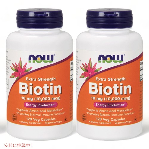 【並行輸入品】【2個セット】Now Biotin 10mg (10,000mcg) 120vcaps #0479 ビオチン 10mg(10000mcg)120ベジカプセル
