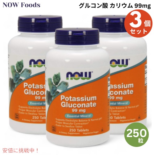 【並行輸入品】3個セット NOW Foods ナウフーズ グルコン酸 カリウム 99mg 250粒 タブレット #01462 Potassium Gluconate 99mg 250 Tablets