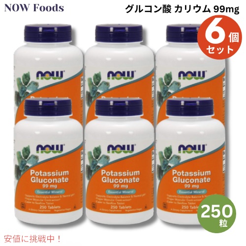 【並行輸入品】6個セット NOW Foods ナウフーズ グルコン酸 カリウム 99mg 250粒 タブレット #01462 Potassium Gluconate 99mg 250 Tablets