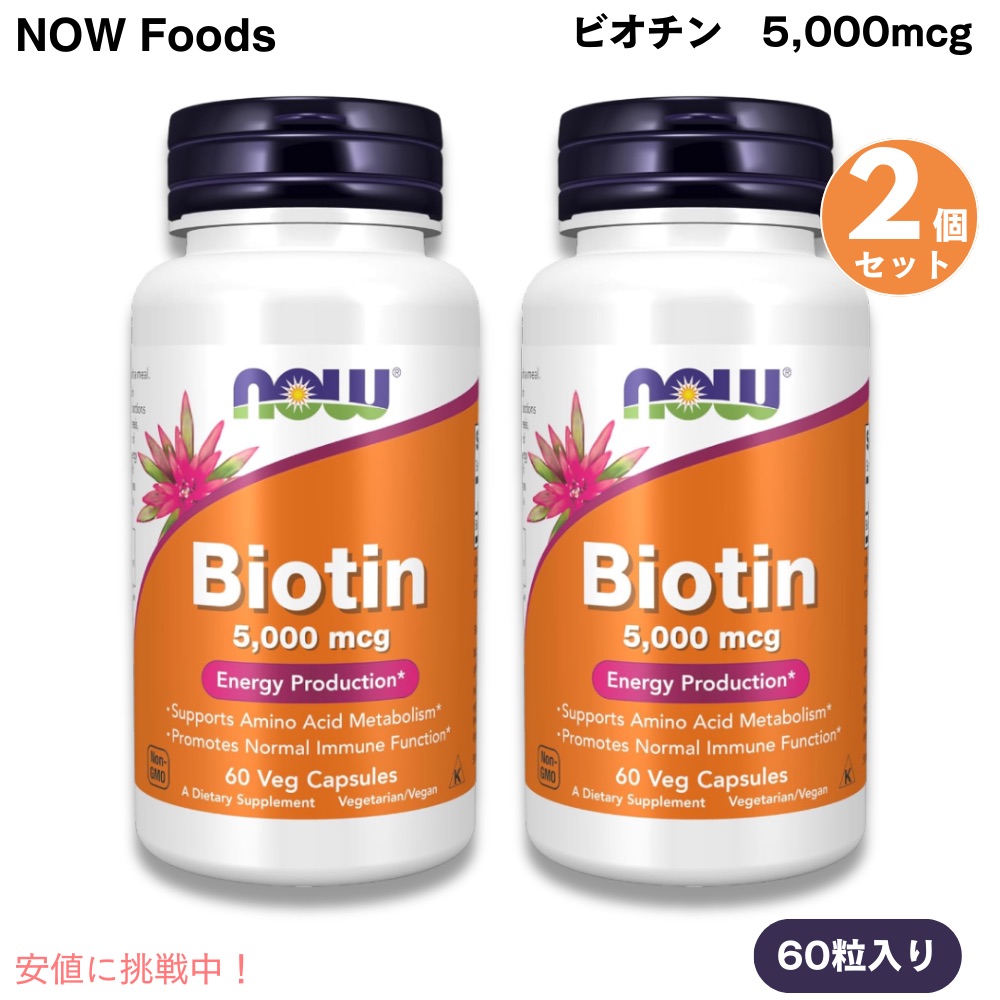 【並行輸入品】[2個セット] NOW Foods ナウフーズ ビオチン 5,000mcg 60粒 ベジカプセル ビタミンH #0471 Biotin 5,000 mcg 60 Veg Capsules