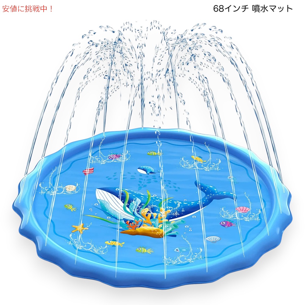 【並行輸入品】Meromore 68インチ スプラッシュパッド ブルー 水遊び 屋外 おもちゃマット 噴水マット 家庭用 水遊び Splash Pad Outdoor Water Play Toy Mat
