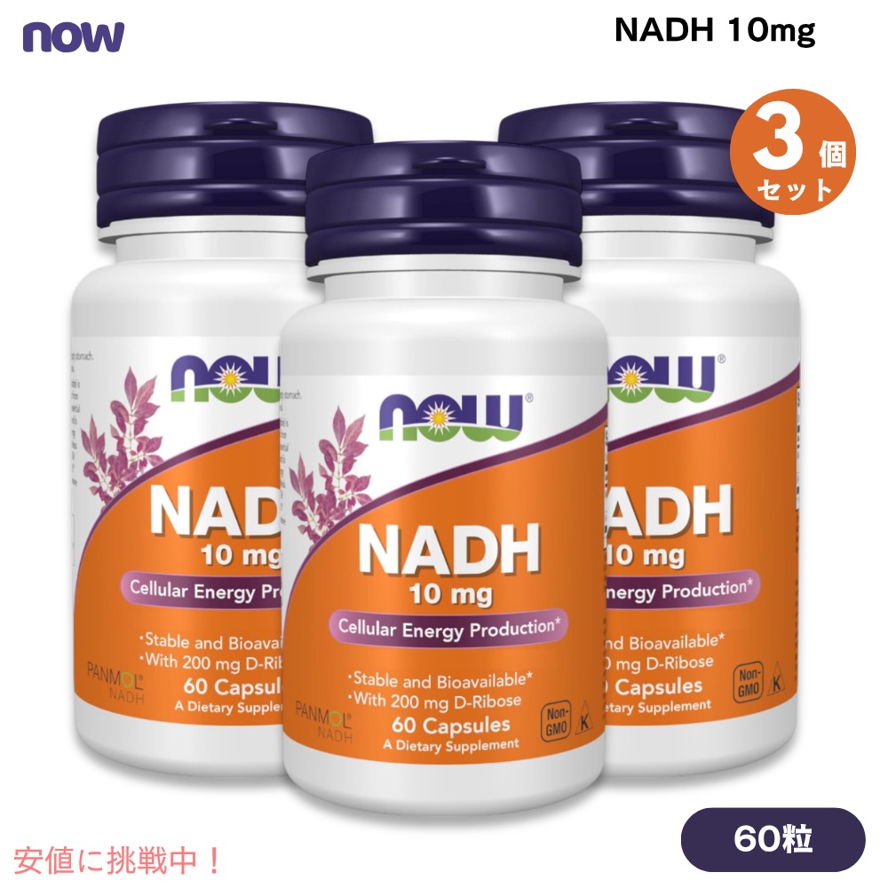 【並行輸入品】【3個セット】NOW Foods ナウフーズ NADH 10mg 60粒 ベジカプセル #3103 NADH 10 mg Capsules
