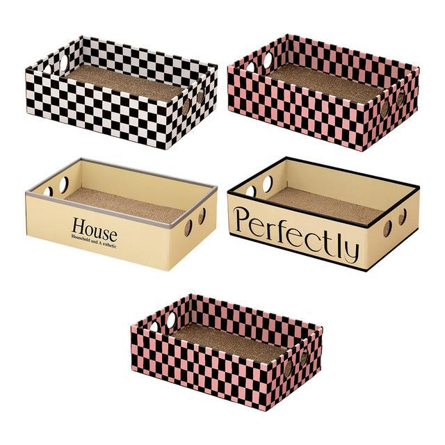 【ベッドラウンジ】: こちらのクリエイティブな長方形の猫用スクラッチボードは、猫の家としてもスクラッチボードとしても機能します。