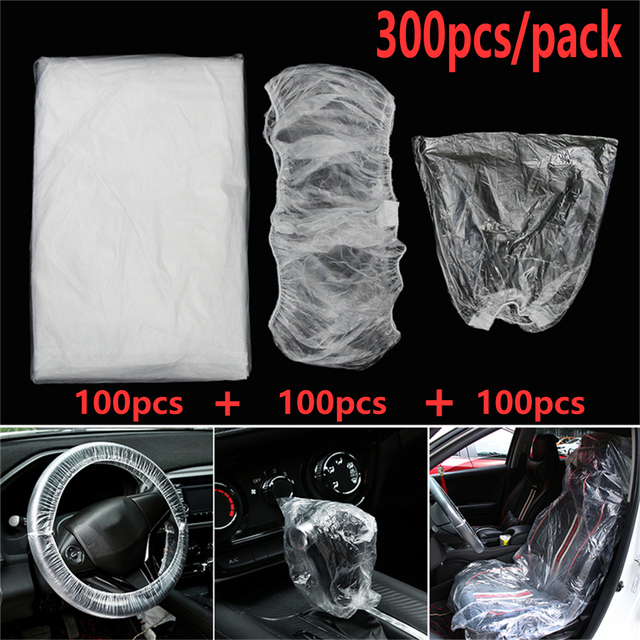 100セット* 使い捨てカバーセット(合計300個/セット:100個のステアリングホイールカバー+ 100個のシートカバー+ 100個の車