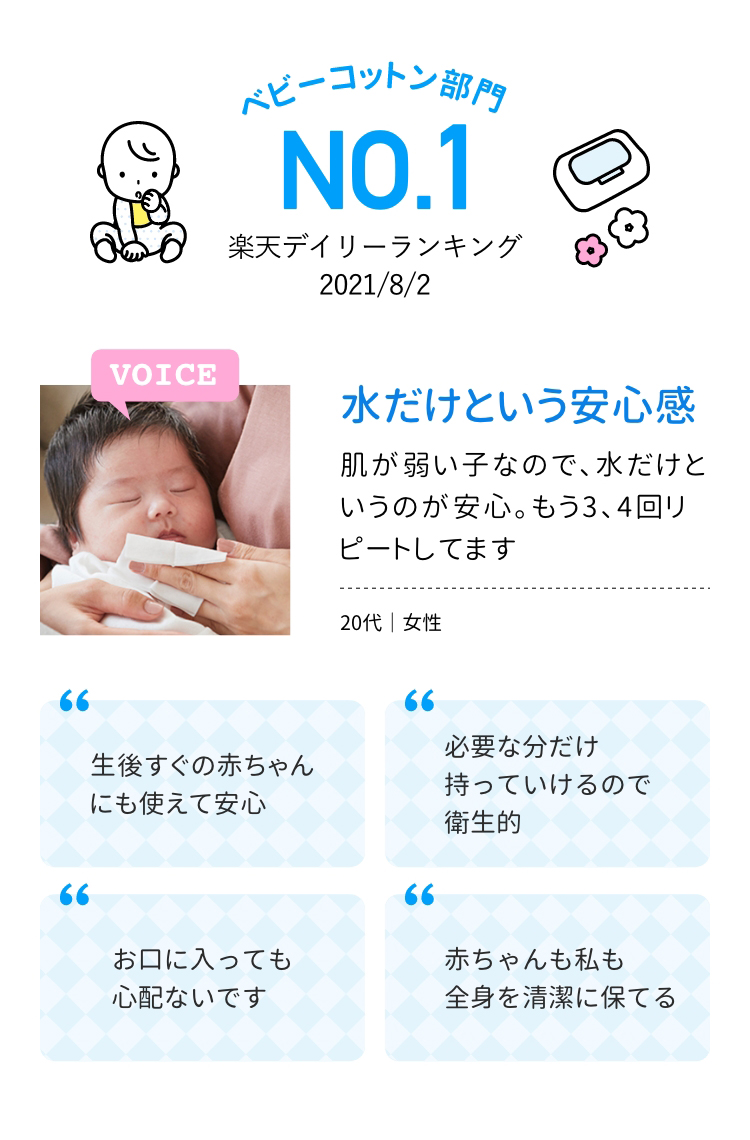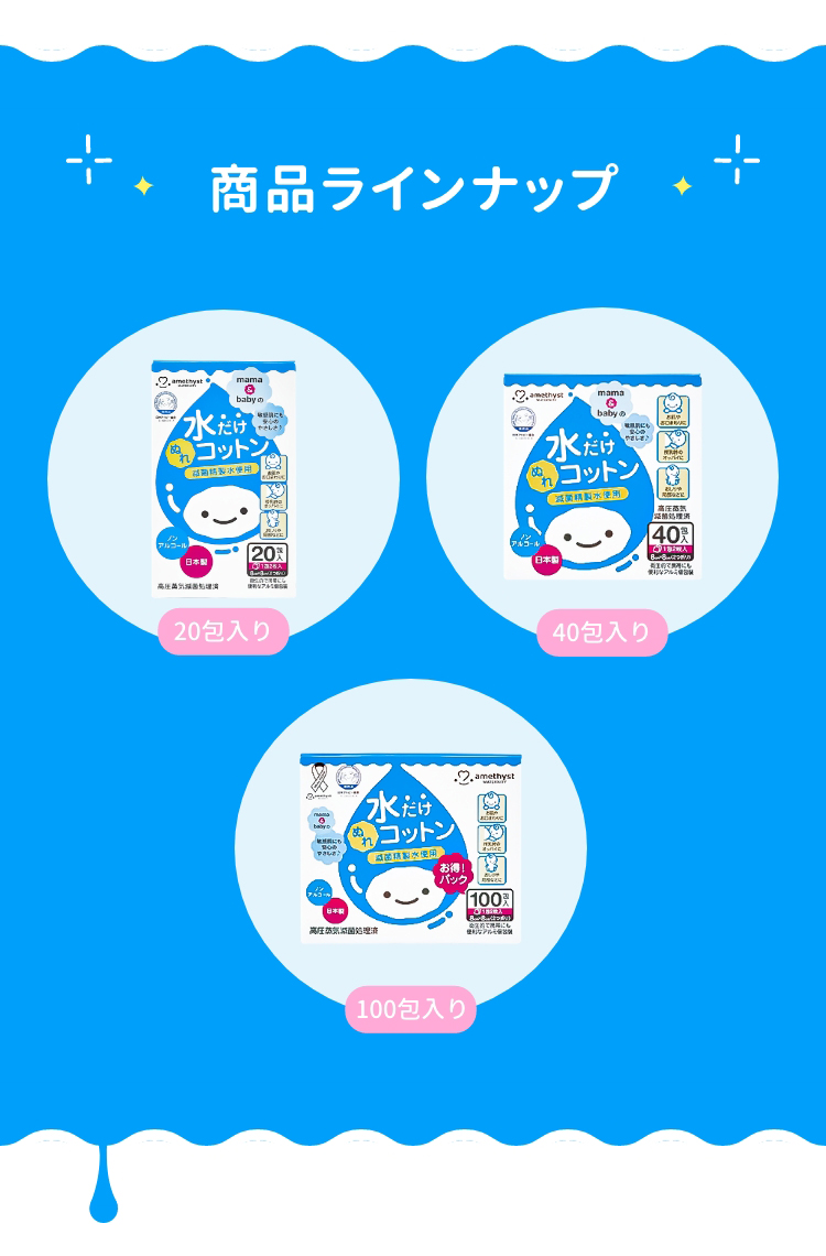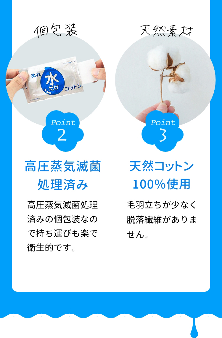 水100% パラベンフリー ノンアルコール 個包装 メーカー直販 ベビーコットン 水だけコットン 水コットン ぬれコットン 高品質 大衛株式会社