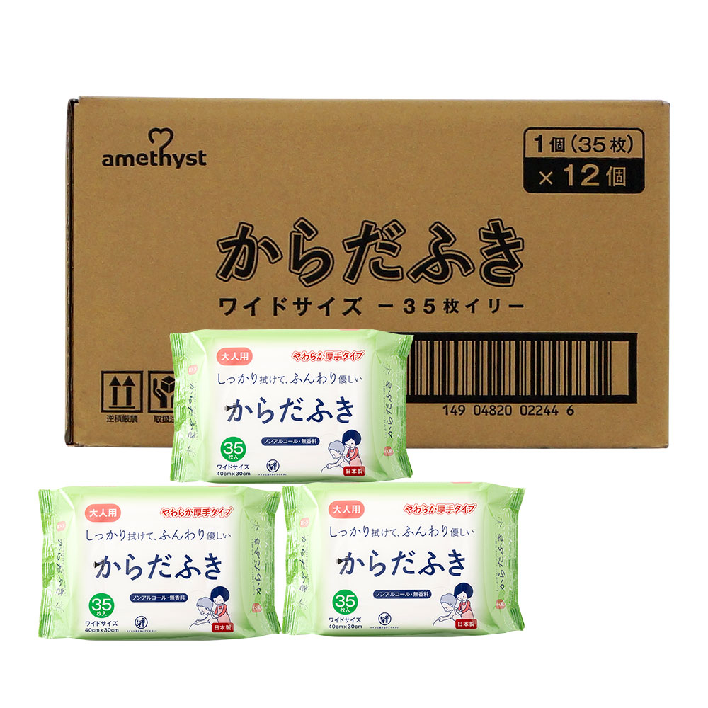 体拭きシート 介護 アメジスト 大人用からだふき大判 35枚入 12個セット(1ケース) からだふき おしりふき お肌に優しい 日本製 介護 看護 災害 備蓄 非常用 大衛