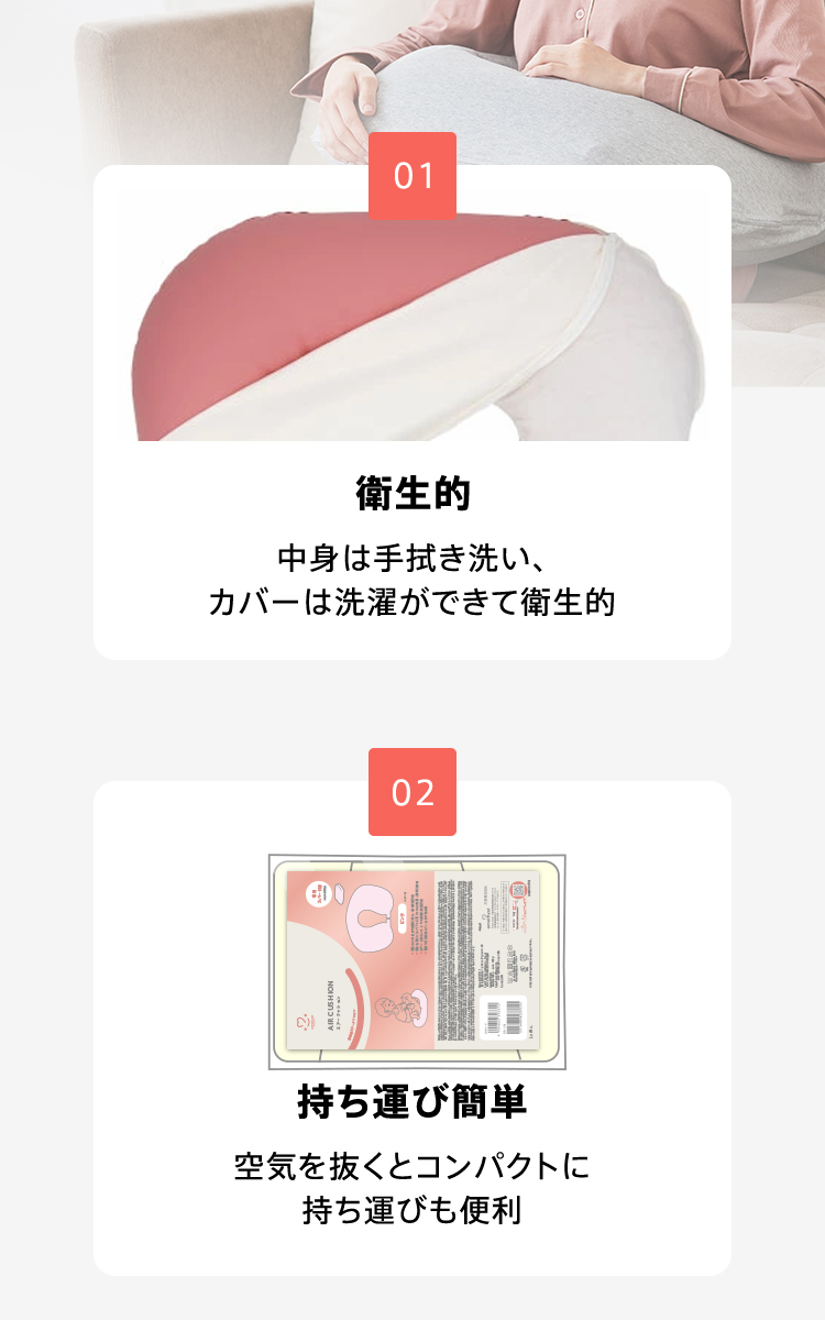 ・エアークッションのため、中身は手拭き洗い、カバーは洗濯ができて衛生的