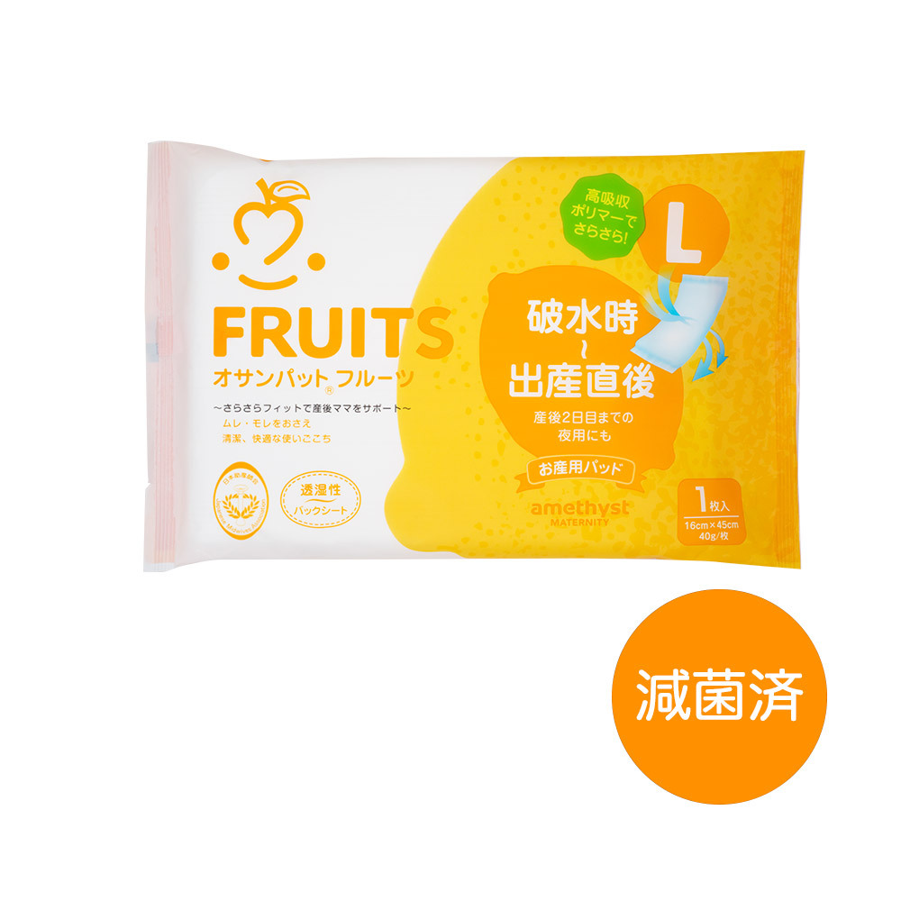 お産パッド お産用パッド お産パット 産褥パッド オサンパットフルーツ レモン 滅菌済 1枚入 (Lサイズ) アメジスト 大衛