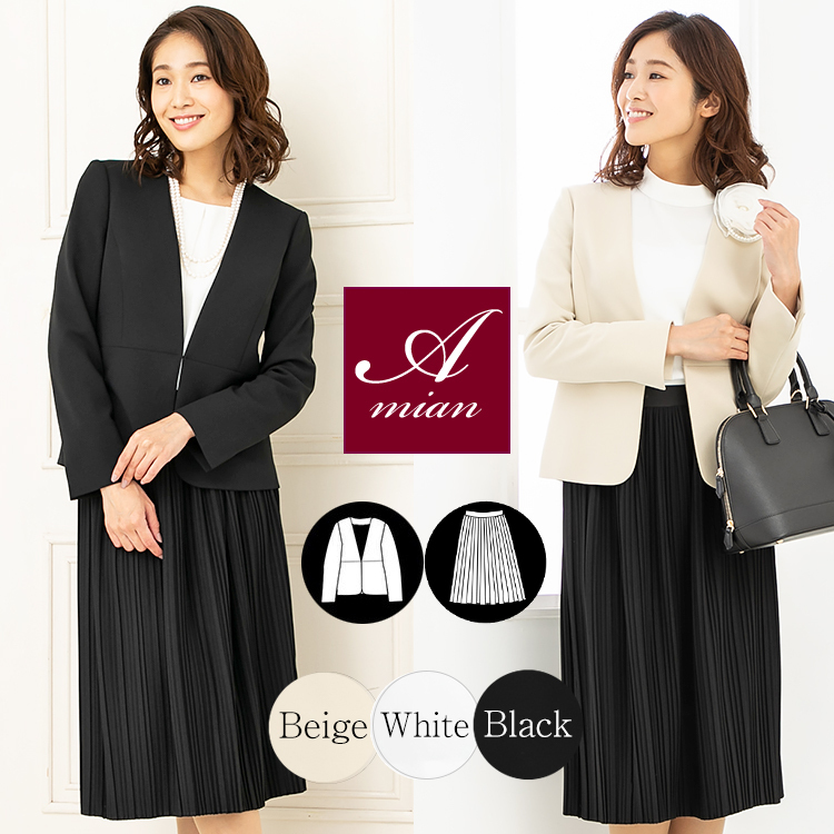 | カラー | ジャケット:ブラック、ベージュ、ホワイト プリーツスカート:ブラック |