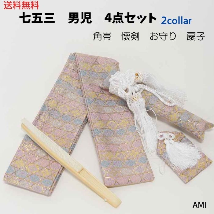 送料無料 和装小物 七五三 子供 こども 男の子 小物セット 七五三 5歳 3歳 男の子用 小物セット 角帯 懐剣 お守り 扇子 4点セット