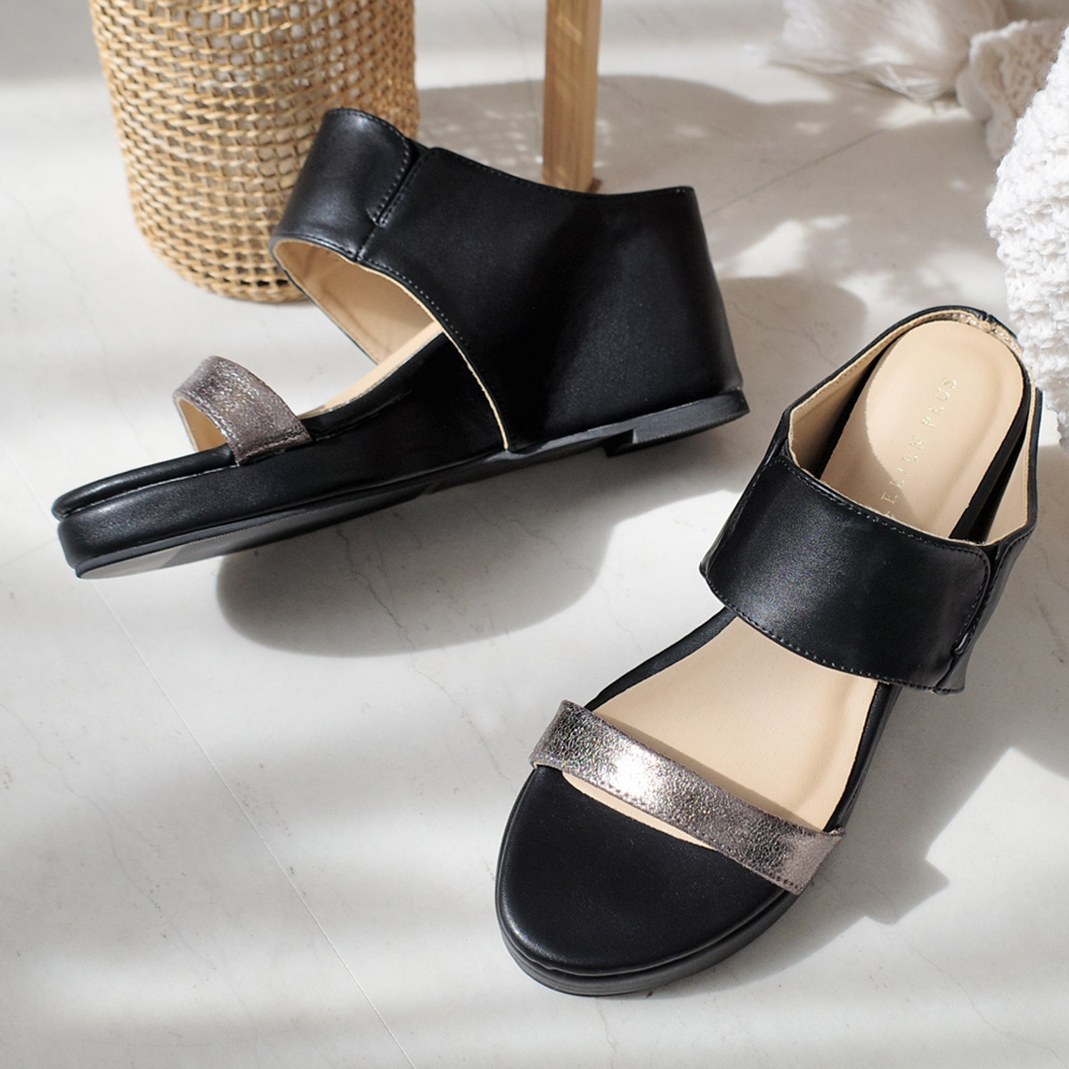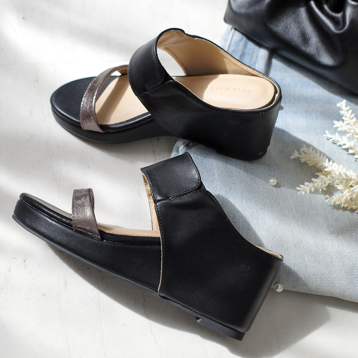 ![]() | 試着サイズ[M] かかとの縁を少し踏んでしまいます。 試着サイズ[L] ≪このサイズを選びます!≫ ちょうどぴったりでかかとが収まります。 |