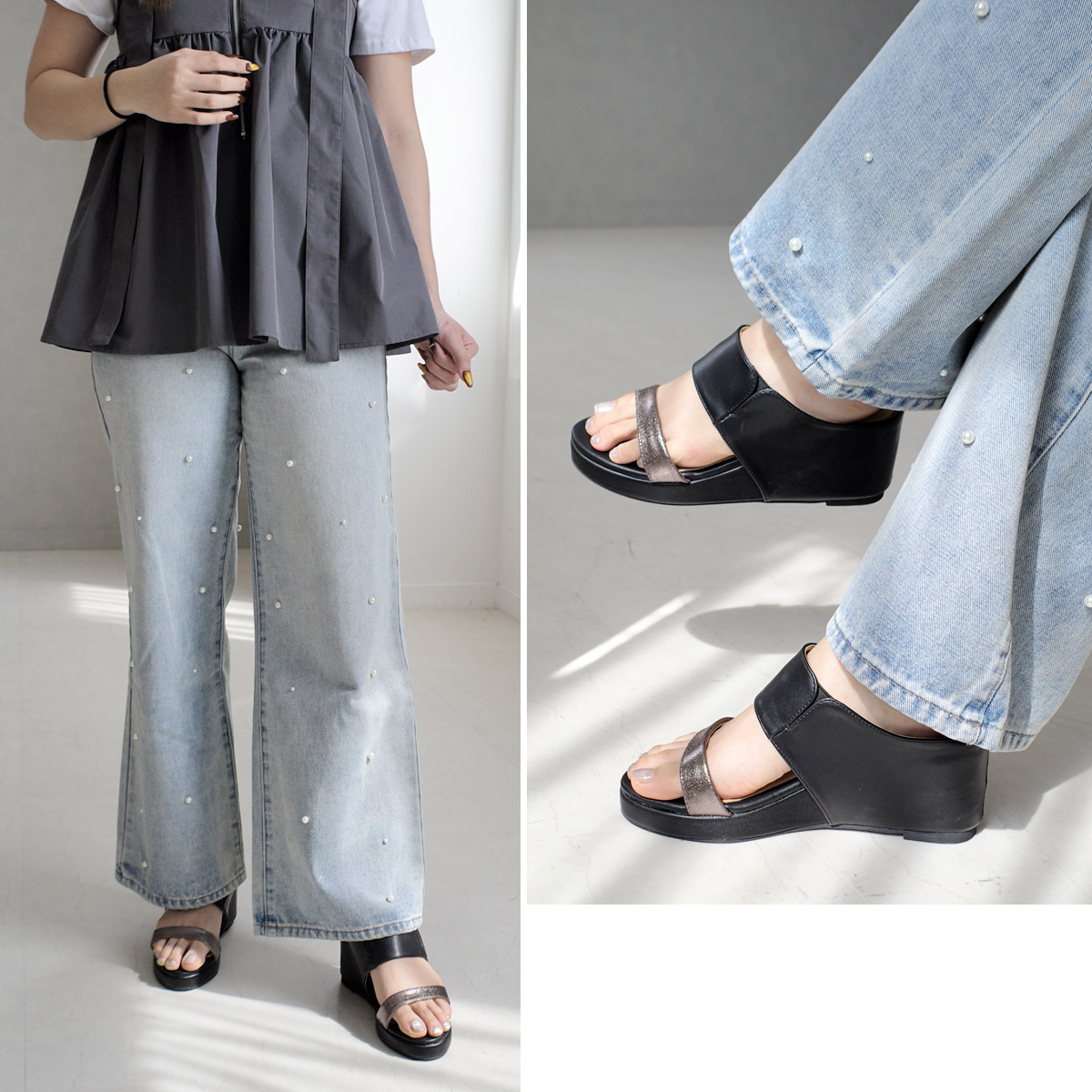 ![]() | 試着サイズ[S] ほどよくゆとりもってちょうどよく履けます。 |