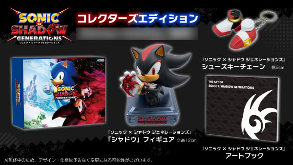 PS5 ソニック × シャドウ ジェネレーションズ ≪先着購入特典≫ DLC「モダンソニック レガシースキン」 映画『SONIC3(原題)』特製ロゴステッカー ≪コレクターズエディション同梱物≫ 『ソニック × シャドウ ジェネレーションズ』 「シャドウ」フィギュア 『ソニック × シャドウ ジェネレーションズ』 シューズキーチェーン 『ソニック × シャドウ ジェネレーションズ』 アートブック |