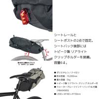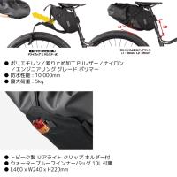 | 仕様 | ●材質:ポリエチレン/ナイロン ●防水性能 : 10,000mm ●最大荷重 : 5kg ●トピーク製 リアライト クリップ ホルダー付 ●ウォータープルーフインナーバッグ 6L付属(YBA04900) |