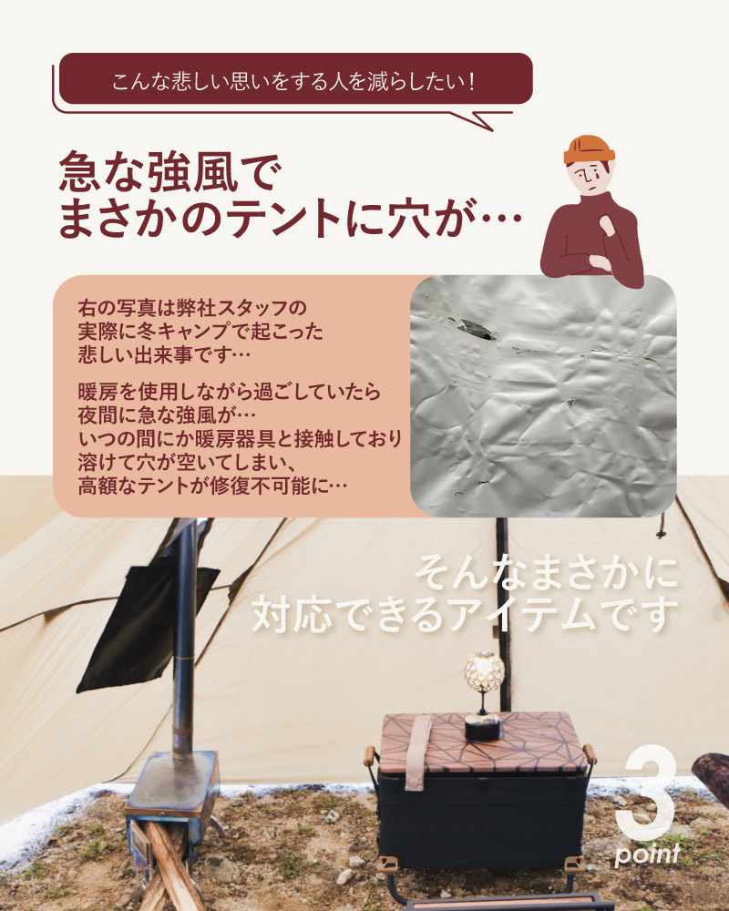 テントガード テントプロテクター ストーブガード ガード 薪ストーブ 石油ストーブ 電気ストーブ ストーブ 40cm×40cm 正方形 マグネット 内蔵