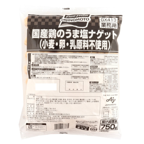 | 原材料 | 鶏肉(国産)、粒状大豆たん白、醸造酢、砂糖、食塩、香辛料、衣(米粉、醸造酢、しょうゆ、でん粉、粉末状大豆たん白、食塩)、揚げ油(なたね油)/ 加工でん粉、調味料(アミノ酸等)、pH調整剤、キシロース、増粘剤(グァー)、ビタミンB1、(一部に大豆・鶏肉を含む) |