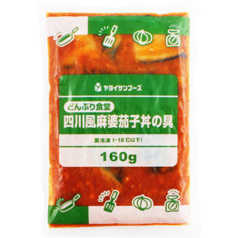 | 原材料 | 揚げなす(なす、植物油脂)(中国製造)、根深ねぎ、しょうゆ、豚肉、糖類(水あめ、砂糖)、植物油脂、豚脂、おろししょうが、清酒、発酵調味料、甜麺醤、豆板醤、中華調味料、トマトケチャップ、ガーリックペースト(にんにく、食塩)、香辛料、粉末がらスープ、食塩、酵母エキス/増粘剤(加工デンプン、キサンタンガム)、調味料(アミノ酸等)、着色料(パプリカ色素、カラメル)、乳化剤、香辛料抽出物、(一部にえび・小麦・ごま・大豆・鶏肉・豚肉を含む) |