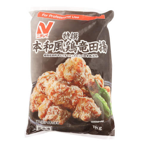 | 原材料 | 鶏肉(もも)、しょうゆ、しょうがペースト、ワイン、砂糖、オイスター風味調味料、混合ぶしエキスパウダー、衣(でん粉、卵白、植物油脂、小麦粉、食塩、米粉)、揚げ油(パーム油、大豆油)/加工でん粉、乳酸Ca、調味料(アミノ酸等)、乳化剤、重曹、キシロース、炭酸Na、香料、クエン酸、着色料(カロチノイド)、(一部に小麦・卵・乳成分・さば・大豆・鶏肉を含む) |