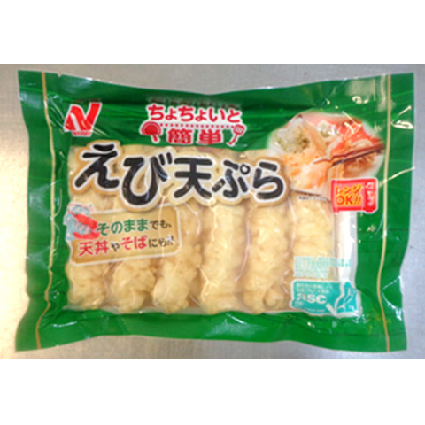 | 原材料 | えび、食塩、衣(小麦粉、でん粉、粉末卵白、食塩、小麦たん白、粉末全卵、香辛料)、揚げ油(大豆油)/加工でん粉、膨張剤、pH調整剤、乳化剤、調味料(アミノ酸)、着色料(ビタミンB2、カロチノイド)、(一部にえび・小麦・卵・大豆を含む) |