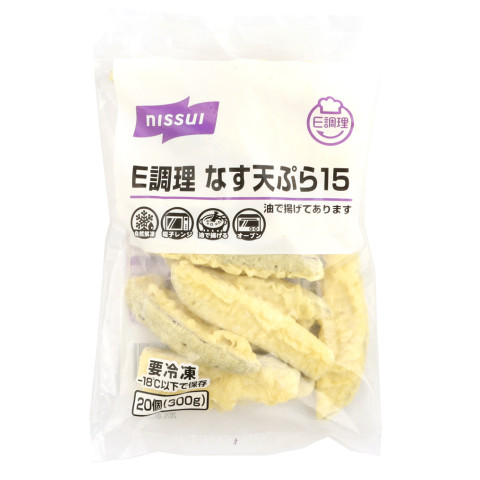 | 原材料 | なす(中国)、衣(小麦粉、でん粉、米粉、えんどう豆粉末、植物油脂、加工油脂、食塩、脱脂粉乳、粉末全卵、えびエキスパウダー)、揚げ油(大豆油)/調味料(アミノ酸)、ベーキングパウダー、着色料(ウコン、カロチノイド)、(一部にえび・小麦・卵・乳成分・大豆を含む) |