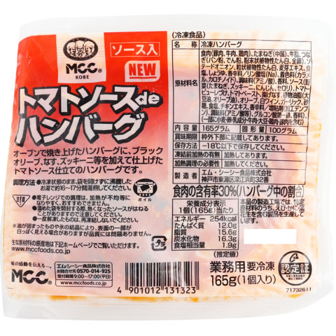 | 原材料 | 食肉(豚肉、牛肉、鶏肉)、たまねぎ(中国)、牛脂、つなぎ(パン粉、でん粉、粉末状植物性たん白、全卵)、ソテードオニオン、粒状植物性たん白、麦芽エキス、食塩、しょうゆ、香辛料/リン酸塩(Na)、着色料(カラメル、カロチノイド)、調味料(アミノ酸)、香料、ソース(野菜(たまねぎ、ズッキーニ、にんじん、セロリ)、トマト・ピューレづけ、トマトペースト、揚げなす、植物油脂(大豆油、オリーブ油)、オリーブ、白ワイン、ガーリック、砂糖、食塩、チキンエキス、香辛料/増粘剤(加工デンプン)、調味料(アミノ酸等)、グルコン酸第一鉄、香料)、(一部に小麦・卵・乳成分・牛肉・大豆・鶏肉・豚肉を含む) |