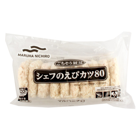 | 原材料 | えび、たまねぎ、えびスープ、パン粉、卵白粉、砂糖、でん粉、食塩、えび香味油、植物性たん白、えびエキスパウダー、衣〔パン粉、小麦粉、植物油脂(大豆油、なたね油)、食塩、砂糖、卵白粉、こしょう〕/加工でん粉、pH調整剤、調味料(有機酸等)、ベーキングパウダー、増粘剤(キサンタン)、乳化剤、焼成Ca、甘味料(スクラロース)、着色料(紅麹)、酵素、(一部にえび・小麦・卵・大豆を含む) |