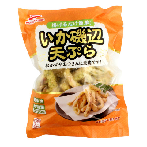 | 原材料 | いか、食塩、いかエキスパウダー、衣(小麦粉、でん粉、食塩、卵白粉、あおさ粉、米粉)、揚げ油(大豆油)/加工でん粉、トレハロース、ベーキングパウダー、調味料(アミノ酸等)、pH調整剤、炭酸水素Na、カロチノイド色素、(一部に小麦・卵・いか・大豆・豚肉・ゼラチンを含む) |