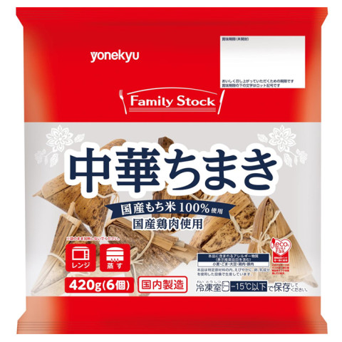 | 原材料 | もち米(国産)、しょう油、砂糖、鶏肉(国産)、しいたけ、水煮たけのこ、植物油脂、玉ねぎ、にんじん、調製ラード、清酒、老酒、ポークエキス、香辛料/調味料(アミノ酸)、増粘剤(加工デンプン)、酸味料、(一部に小麦・ごま・大豆・鶏肉・豚肉を含む) |