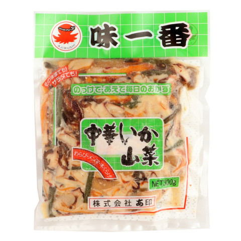 | 原材料 | いか(ペルー産又はチリ産)、水煮わらび、水煮めんま、水煮きくらげ、砂糖、生姜、食用調合油、醤油(小麦・大豆を含む)、醸造酢、ごま、食塩、唐辛子/調味料(アミノ酸等)、着色料(アナトー、銅葉緑素)、酸味料、漂白剤(亜硫酸塩) ※「いか」の産地は、前年度の使用実績順 |