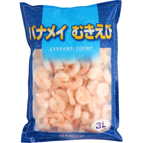 | 原材料 | バナメイえび(養殖)(インド)、食塩/pH調整剤、調味料(アミノ酸)、酸化防止剤(ビタミンC) |