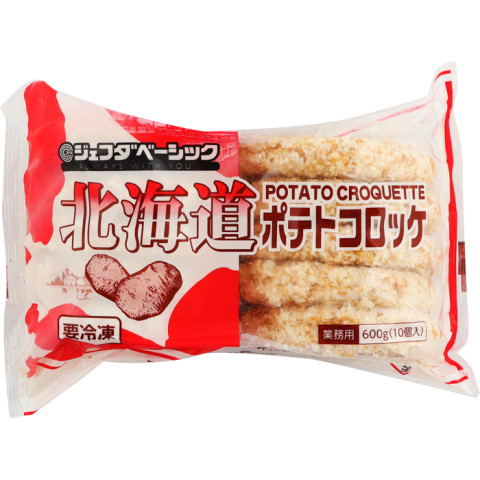 | 原材料 | 野菜{ばれいしょ(日本)、たまねぎ}、パン粉、砂糖、粒状植物性たん白、しょうゆ、マーガリン、食塩、香辛料、衣(パン粉、小麦粉、コーンフラワー、コーングリッツ、粉末油脂、食塩)/増粘剤(加工デンプン、増粘多糖類)、加工デンプン、調味料(アミノ酸等)、膨張剤、着色料(カラメル、カロチノイド)、香料、(一部に小麦・乳成分・大豆を含む) |