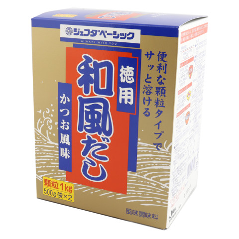 | 標準使用量 | 【みそ汁(4人分)】 水600ccで具を煮て、小さじ1杯を加え、みそ大さじ約3杯入れ、沸騰直前に火を止める。 【煮物のだし(4人分)】 水600ccに小さじ1杯を加え、醤油、砂糖、みりん各大さじ約3杯加え煮る。 【めんつかけつゆ(2人分)】 水600ccに小さじ1杯を加え、醤油、大さじ3、みりん大さじ2、砂糖小さじ1/2で煮る。 ◎天つゆ6人分(水300cc)、おでん2人分(水400cc)、お吸いもの4人分(水600cc)、丼物2人分(水400cc) |