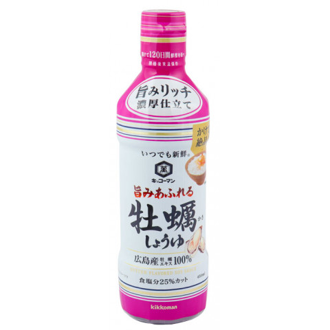 | 原材料 | しょうゆ(大豆・小麦を含む)(国内製造)、砂糖、食塩、かきエキス、小麦発酵調味料、ほたてエキス、しいたけエキス、昆布/アルコール、調味料(アミノ酸等)、酸味料、甘味料(ステビア)、ビタミンB1 |