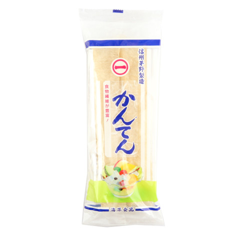 | 使い方 | かんてんを水で押し洗いした後よく絞り、適当にちぎります。寒天1本に水600ccが標準です。 |