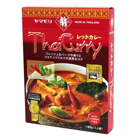 | 原材料 | 鶏肉、ココナッツミルク、野菜・果実(なす、マンゴー、にんにく)、ナンプラー、カレーペースト、ココナッツパウダー(乳成分を含む)、砂糖、唐辛子、バジル、レモングラス、大豆油、ガランガル、こぶみかんの葉、食塩、こぶみかんの皮、シュリンプペーストパウダー(えびを含む)、パクチーの根、パクチーの種、クミン/増粘剤(加工でん粉)、pH調整剤、パプリカ色素、塩化カルシウム |