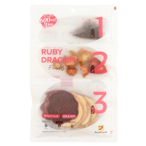 | 原材料 | ドライフルーツ(ドラゴンフルーツ、梨、リンゴ、レーズン、キンカン、いちご)、紅茶/香料 |