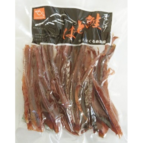 | 原材料 | 鮭(北海道産)、食塩、砂糖/トレハロース、調味料(アミノ酸等)、ソルビトール、着色料(紅〓色素)、(一部にさけを含む) |