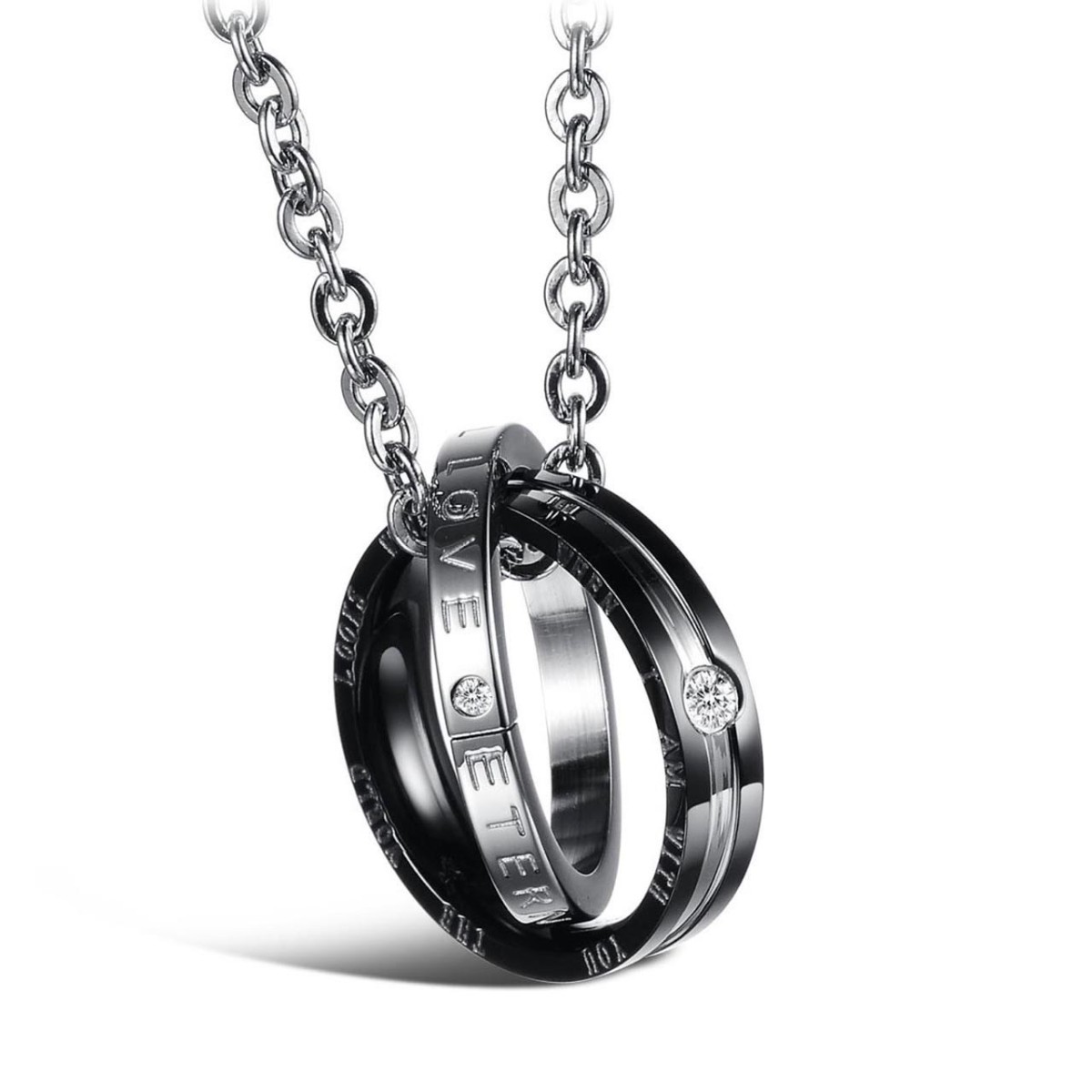 ダブルリングペンダント メンズ 2連 ネックレス ステンレス ブラック トップ径23mm 送料込み