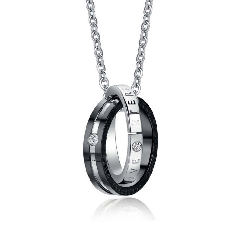 [小ぶり]ダブルリングペンダント 2連 ネックレス ステンレス ブラック トップ径20mm 送料無料